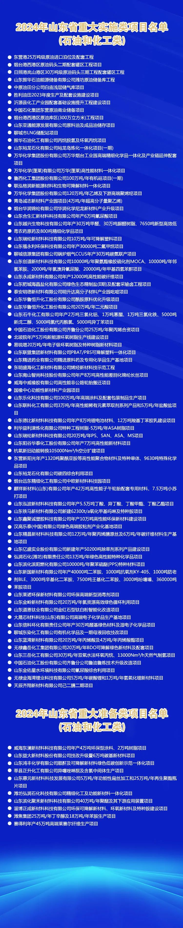 文末附2024山東重點化工項目名單。
